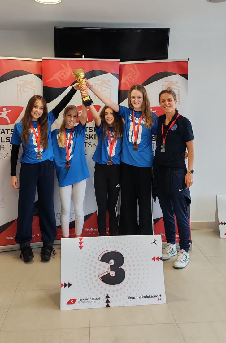 Naše učenice Alba Križanić, Gaia Ferenčić, Pia Perdija Grbić i Korina Jonjić nastupile su na Državnom prvenstvu u krosu u Poreču, 23. i 24. studenog 2025. godine. U izrazito jakoj konkurenciji ekipa iz cijele Hrvatske, naše učenice osvojile su 3. mjesto i zaslužile brončanu medalju. Ovaj izniman uspjeh potvrđuje njihovu sportsku spremnost, ustrajnost i zajedništvo. Osvojena brončana medalja na Državnom prvenstvu školskih sportskih društava u krosu predstavlja veliki uspjeh za našu školu. Učenice su na ponosan i dostojanstven način predstavljale svoju školu te stekle vrijedno natjecateljsko iskustvo.